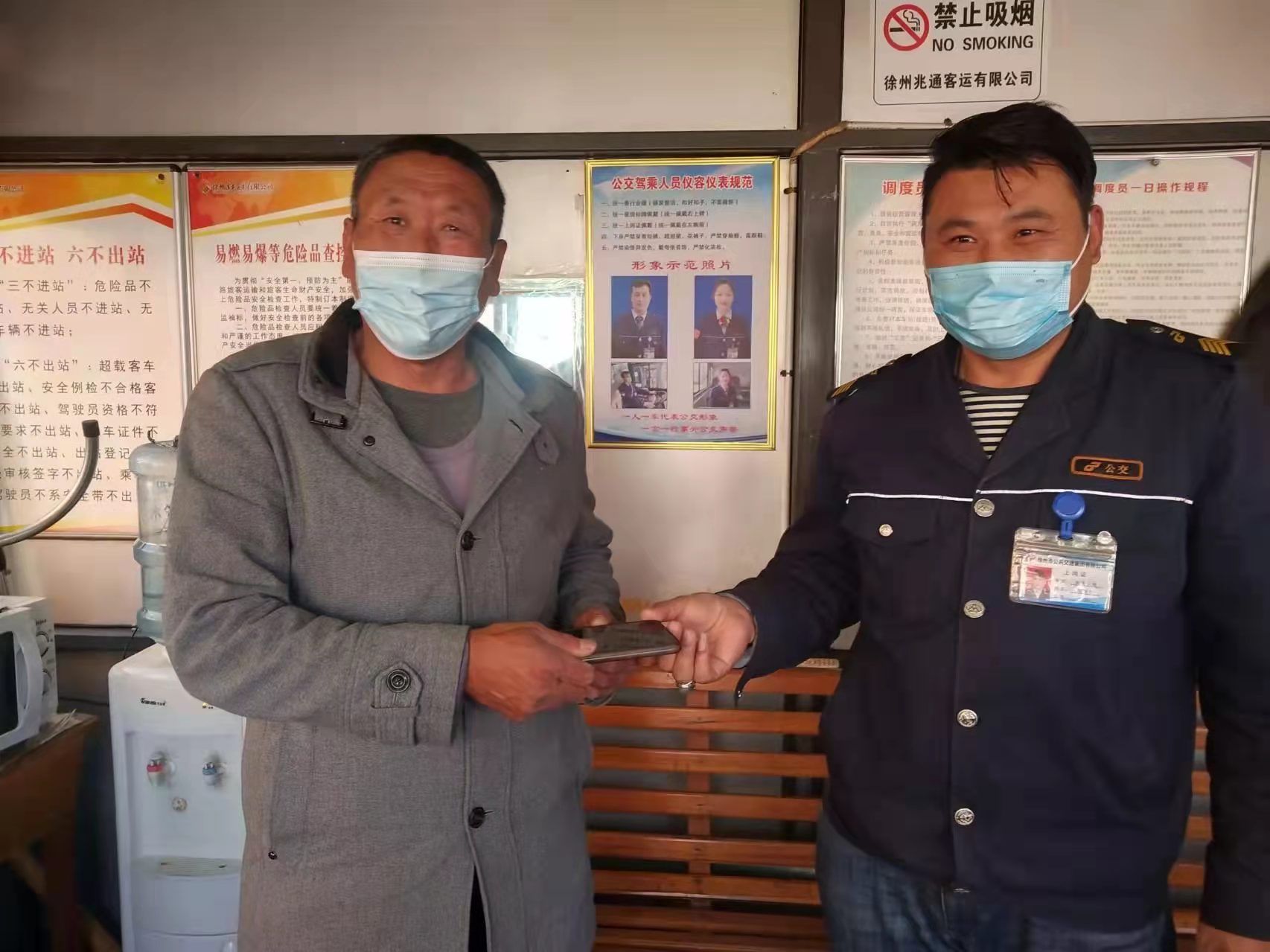 2022年3月9日早上6點(diǎn)多,家住銅山區(qū)房村鎮(zhèn)的梁先生在宣武市場(chǎng)轉(zhuǎn)乘85路公交車(chē),由于下車(chē)匆忙,不慎把手機(jī)丟在了車(chē)上,幸虧被駕駛員吳寶撿到交到車(chē)隊(duì)。管理人員通過(guò)手機(jī)上的電話(huà)號(hào)碼聯(lián)系到失主家人,失主于下午14:20分趕到宣武車(chē)站拿回手機(jī),并對(duì)駕駛員的這種拾金不昧的行為表示感謝!