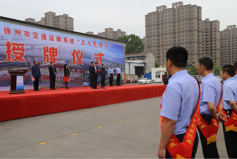 5月8日上午10點(diǎn),徐州市總工會(huì)在郭莊路停保場隆重舉行徐州市交通運(yùn)輸系統(tǒng)“工人先鋒號(hào)”授牌儀式。徐州市人大副主任、市總工會(huì)主席束志明,徐州市副市長趙立群,市文明辦主任沈麗,市交通運(yùn)輸局局長蔡前鋒,市總工會(huì)副主席劉洪印、副主席潘華,市交通運(yùn)輸局工會(huì)主席王培河以及公司董事長、總經(jīng)理杜紅軍等領(lǐng)導(dǎo)出席了授牌儀式。來自公交公司、汽車客運(yùn)總站等交通運(yùn)輸行業(yè)的300余名員工參加了授牌大會(huì)。