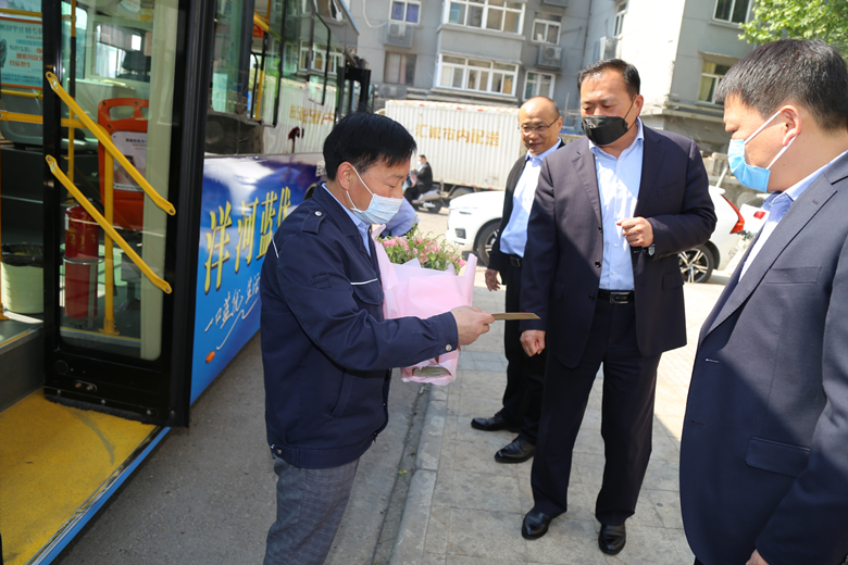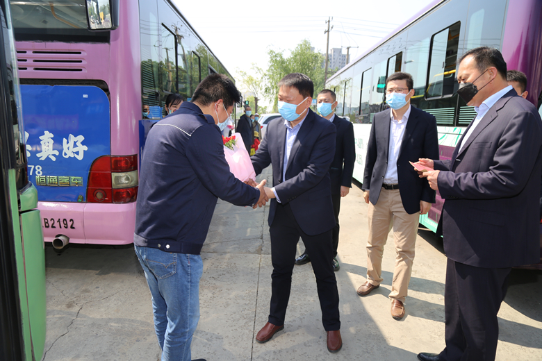 當(dāng)天上午,公交集團(tuán)黨委書記、董事長杜紅軍,總經(jīng)理馮陸陸,常務(wù)副總經(jīng)理蔣成彪,副總經(jīng)理丁玉華帶隊分為四組,到14路、64路、10路等終點(diǎn)站、車場等處開展勞模標(biāo)兵走訪慰問活動,為韓杰、劉艷軍、楊鵬鵬、曹瑞國、劉委等11名市勞模,省、市五一勞動獎?wù)潞推髽I(yè)勞模送去了鮮花和節(jié)日慰問金。