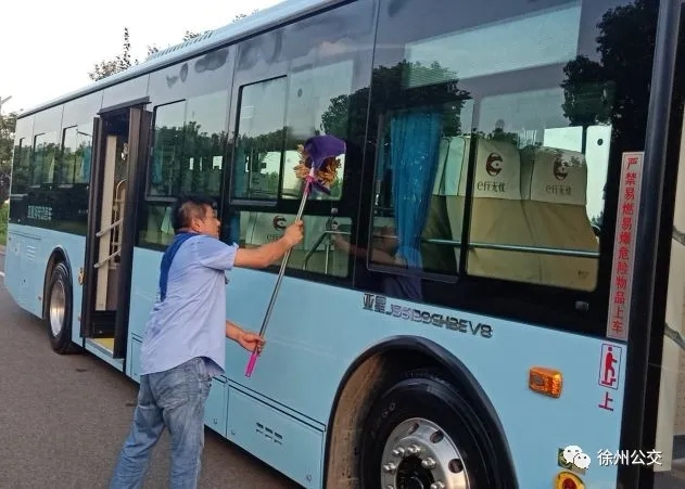 只見他舉著長長的板刷在車窗上舞動著,一些難清理的污漬,他用抹布一點點的清除……不久,汗水爬滿了臉頰,淺藍色的工作服早已變成了深藍色。但是看著干凈透亮的車窗,一股滿足感油然而生。他說:“最近非常悶熱,但保持車廂干凈、做好防疫工作一刻不能放松。”說著,他又拿起消毒劑對車廂內(nèi)進行了全面消毒。