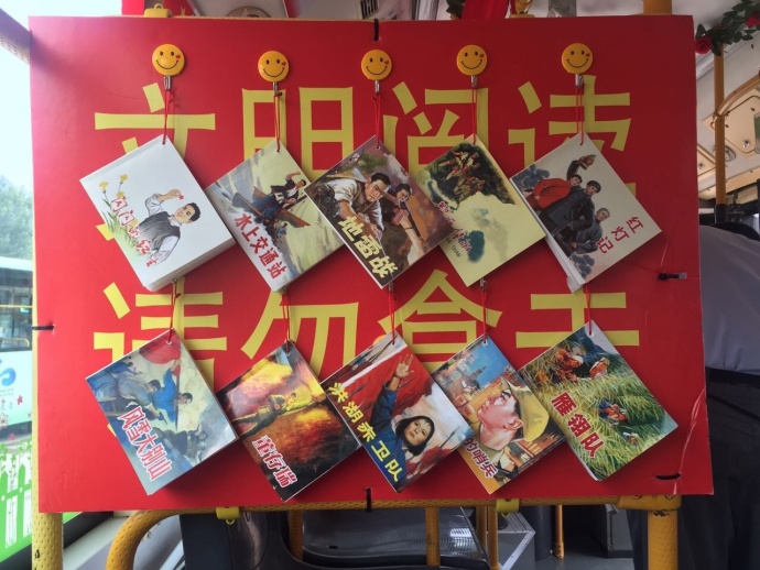 11路286車駕駛員曹瑞國,是一名老黨員,每逢大小節(jié)日,他都會自掏腰包提前購買一些小禮品,送給當(dāng)天乘車的市民。今年為慶祝黨的生日,曹瑞國布置了特色車廂:在車廂掛100面紅旗,在車窗上張貼英雄人物事跡海報,尤其是車廂里的抗日小人書讀書角贏得了乘客贊譽。