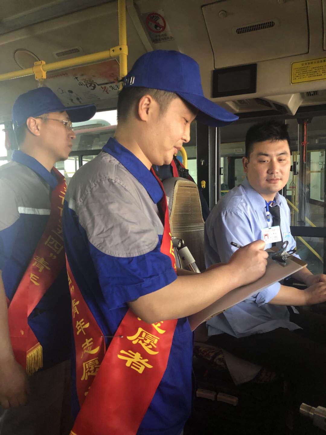 47名公交青年職工身披紅色綬帶,分組來到民樂園、風(fēng)華園、惠民小區(qū)、高鐵、淮西客運(yùn)站等居民小區(qū)、站臺,發(fā)放《公交乘車指南》,邀請熱心乘客填寫《乘客滿意度調(diào)查表》,傾聽市民的意見和建議。同時(shí),幫助市民安裝手機(jī)“掌上公交”APP,添加徐州公交微信公眾號方便市民及時(shí)了解公交信息動(dòng)態(tài),并贈送紀(jì)念品。在高鐵等公交站臺,公交青年看到需要幫助的乘客,還不時(shí)去攙扶老年乘客、幫助乘客搬運(yùn)行李等,在淮西客運(yùn)站車場,保修青年志愿者幫助駕駛員檢修車輛,傾聽駕駛員意見和建議。
