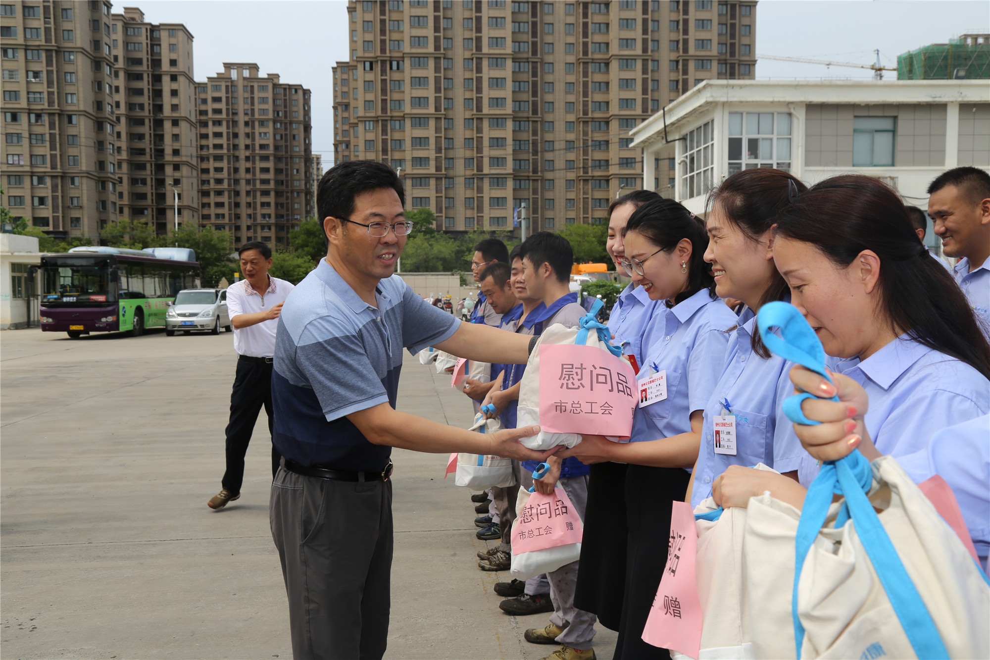 慰問現(xiàn)場,市總王建民副主席親切地和公交職工們一一握手,并給他們送上防暑降溫的“清涼禮包”、醫(yī)用急救箱和《如何防止職業(yè)病》等安全書籍,對大家不畏酷暑堅(jiān)守工作崗位的辛苦付出和不懈努力,表示了衷心的感謝;并強(qiáng)調(diào)要高度重視職工健康和安全,扎實(shí)做好高溫期間防暑降溫和安全生產(chǎn)工作,多關(guān)注關(guān)心職工身體狀況,保障高溫一線職工的安全、健康,確保安全生產(chǎn);并叮囑廣大職工要增強(qiáng)自我保護(hù)意識,合理休息、注意身體。
