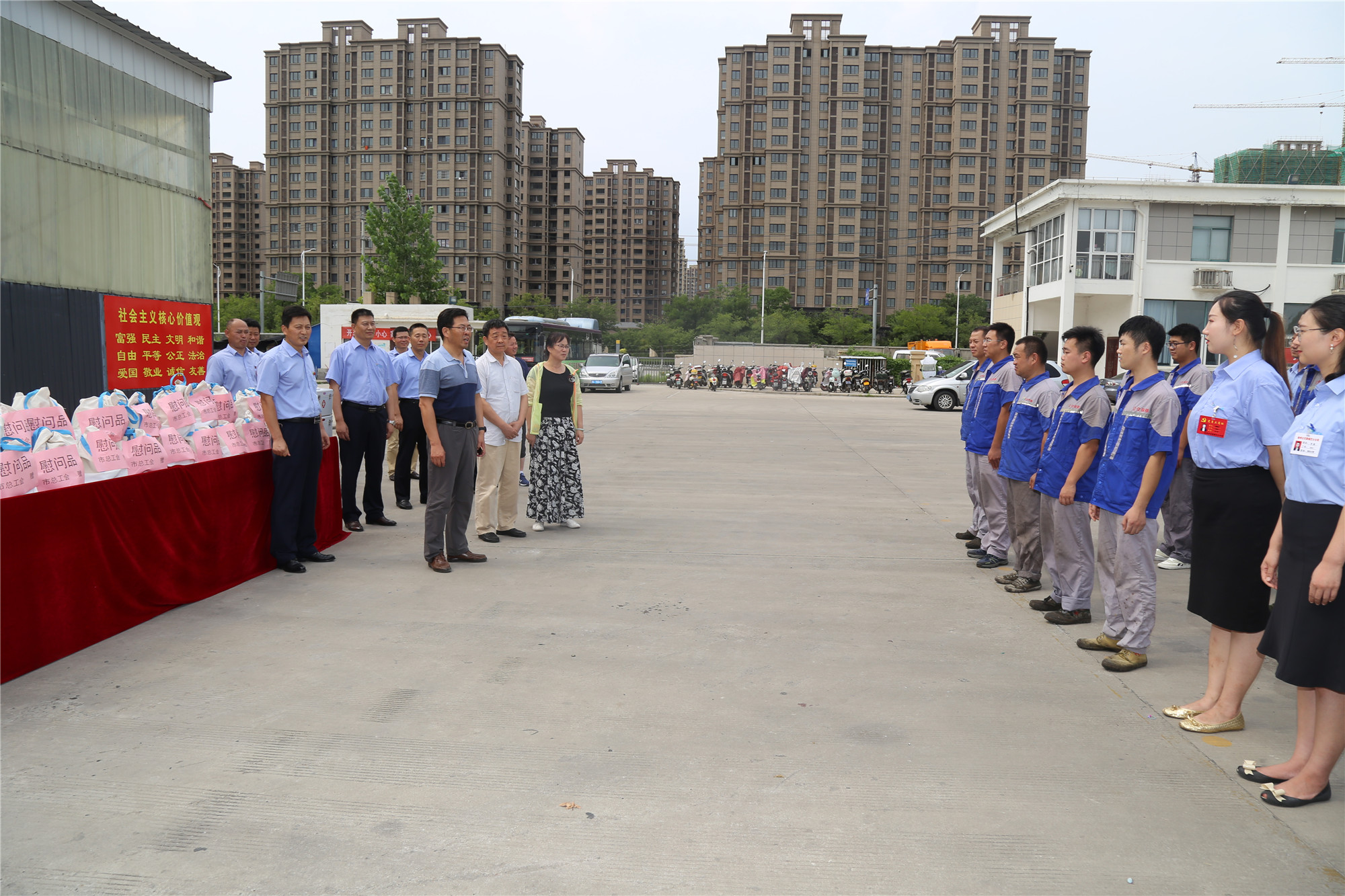 正值盛夏,近期我市持續(xù)高溫、濕熱多雨,持續(xù)攀升的炎熱天氣“烤驗(yàn)”著堅(jiān)守崗位的公交職工。三伏天里,工會娘家人總是心系一線職工安康,8月1日下午,徐州市總工會黨組成員、副主席王建民,副調(diào)研員馮相合等一行,在市交通運(yùn)輸局工會副主席巨玲和徐州公交公司總經(jīng)理馮陸陸,公司黨委副書記、紀(jì)委書記、工會主席竇同銀的陪同下,頂烈日冒酷暑來到郭莊路公交停車場,看望慰問了奮戰(zhàn)在高溫一線的公交職工,送來了高溫慰問品,更送來了殷殷關(guān)愛和叮嚀,讓大家感受到了夏日里的絲絲“清涼”。