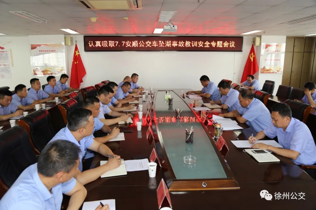 為吸取“7·7”安順公交車(chē)墜湖事故教訓(xùn),認(rèn)真貫徹落實(shí)習(xí)近平總書(shū)記關(guān)于安全生產(chǎn)重要論述,按照市委、市政府安全生產(chǎn)專(zhuān)項(xiàng)整治三年行動(dòng)方案及市交通運(yùn)輸局、市交通控股集團(tuán)相關(guān)要求,7月10日,徐州公交集團(tuán)召開(kāi)了認(rèn)真吸取“7·7”安順公交車(chē)墜湖事故教訓(xùn)安全專(zhuān)題會(huì)議。集團(tuán)總經(jīng)理馮陸陸,常務(wù)副總經(jīng)理蔣成彪,調(diào)研員王遠(yuǎn)慶以及各營(yíng)運(yùn)公司經(jīng)理、安全經(jīng)理和機(jī)關(guān)、直屬單位負(fù)責(zé)人參加了會(huì)議。