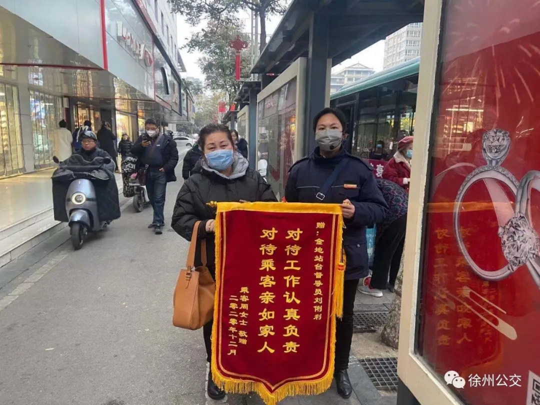 錦旗上印有“對(duì)待工作認(rèn)真負(fù)責(zé),對(duì)待乘客親如家人”的字樣,在這句贊美之言的背后有著這樣一段暖心故事:幾天前周大爺去超市采購(gòu),拎著兩包東西準(zhǔn)備坐車,正在站臺(tái)執(zhí)勤的劉俐利看見(jiàn)了老遠(yuǎn)就迎上去,趕忙接過(guò)老人手里的東西,安頓好老人坐在候車位上。隨后提醒老人家車快進(jìn)站了,準(zhǔn)備好乘車卡和口罩,這時(shí)老人才發(fā)現(xiàn)自己的口罩忘在超市收銀臺(tái)了,劉俐利趕緊從隨身攜帶的包里拿出一個(gè)口罩給了周大爺,并且?guī)椭艽鬆敯褍砂鼥|西提上車并幫他找好座位。
