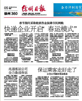2月3日日?qǐng)?bào)刊登徐州公交備戰(zhàn)春運(yùn)稿