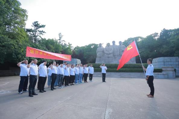 最后,在淮海戰(zhàn)役烈士紀念塔前,退伍軍人及黨員們面向黨旗莊嚴宣誓,一起重溫入黨誓詞,鏗鏘有力的誓言堅定著為黨的事業(yè)、為共產(chǎn)主義奮斗終生的決心。
