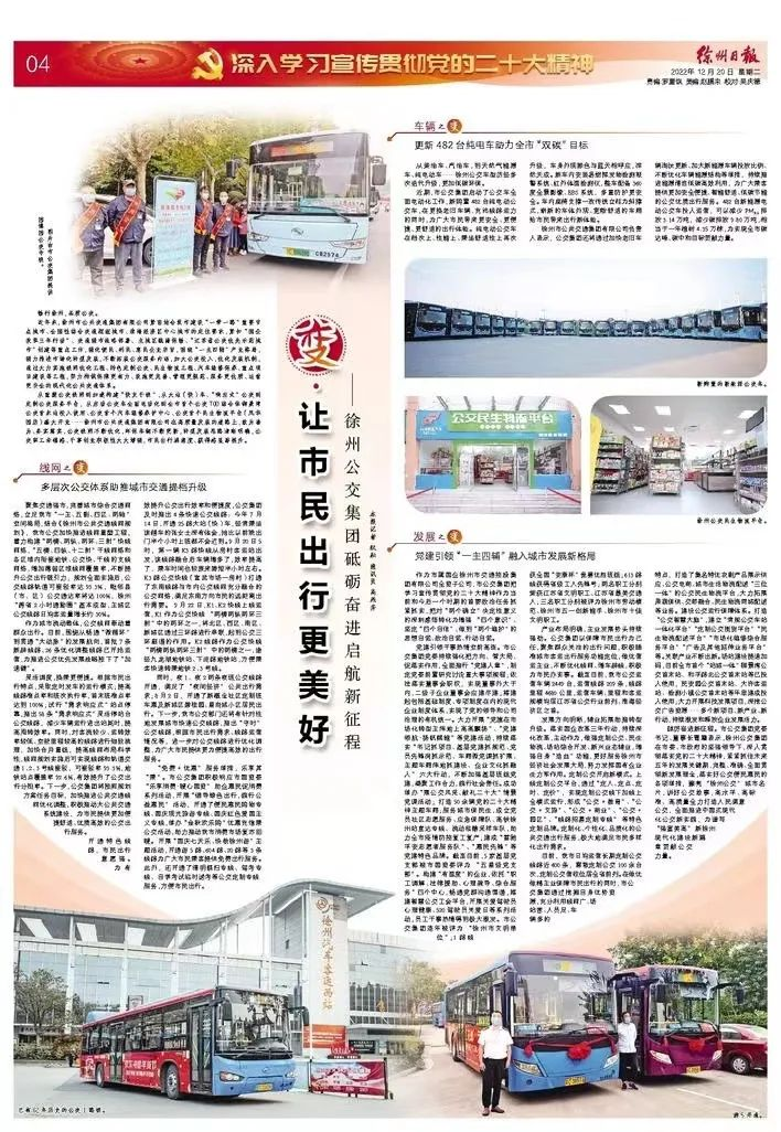 12月20日《徐州日報(bào)》04版刊登文章《變.讓市民出行更美好——徐州公交集團(tuán)砥礪奮進(jìn)啟航新征程》