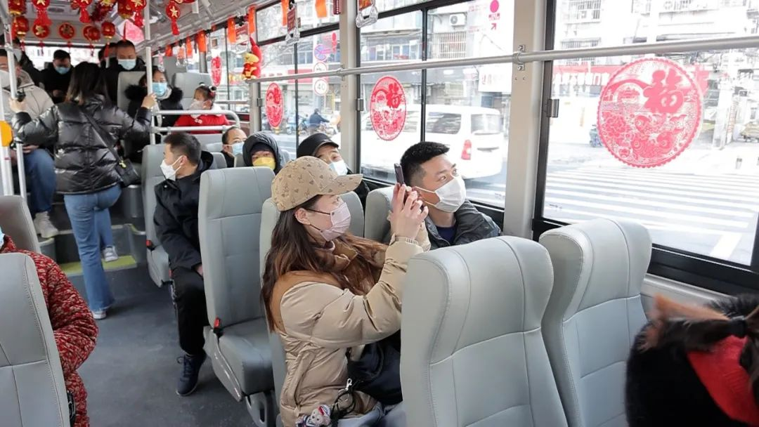 在嶄新的新能源公交車上,市民們不僅可以打卡“年味車廂”,還可以享受提檔升級(jí)的軟座。同時(shí),為了方便市民春節(jié)出行購物需求,新車的車身還張貼了“徐州定制公交”“徐州公交民生物流平臺(tái)”“徐州公交維修保養(yǎng)中心”小程序等便民服務(wù)“貼士”。