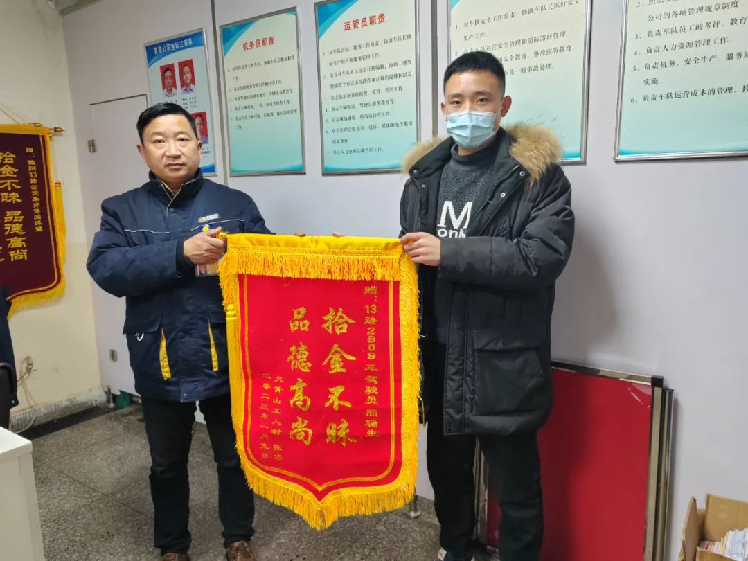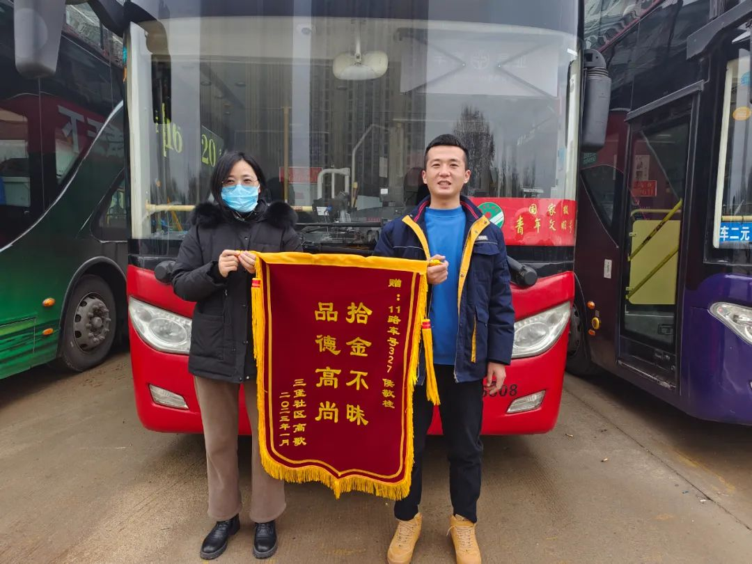 ]]>不久后,抵達(dá)終點(diǎn)站的駕駛員陳朋打掃車輛衛(wèi)生時(shí),在座位上發(fā)現(xiàn)了一個(gè)藍(lán)色文件袋,內(nèi)有戶口本、結(jié)婚證、房產(chǎn)證、購房合同和錢包等重要物品。陳朋立即將其送到調(diào)度室,與車隊(duì)工作人員核對好文件袋內(nèi)的物品后,隨即聯(lián)系了高鐵站派出所,經(jīng)過多方查找聯(lián)系到孫女士,物品失而復(fù)得,孫女士難掩心中的喜悅,與工作人員約好地點(diǎn),最終順利地取回了失物。“這些材料都是房屋過戶用的,多虧陳師傅撿到?!睂O女士十分感謝,當(dāng)即撥打了12345熱線電話對陳朋拾金不昧、急乘客所急的做法進(jìn)行表揚(yáng),并于1月11日送來了一面印有“拾金不昧好風(fēng)尚 情暖人間似親人”的錦旗。