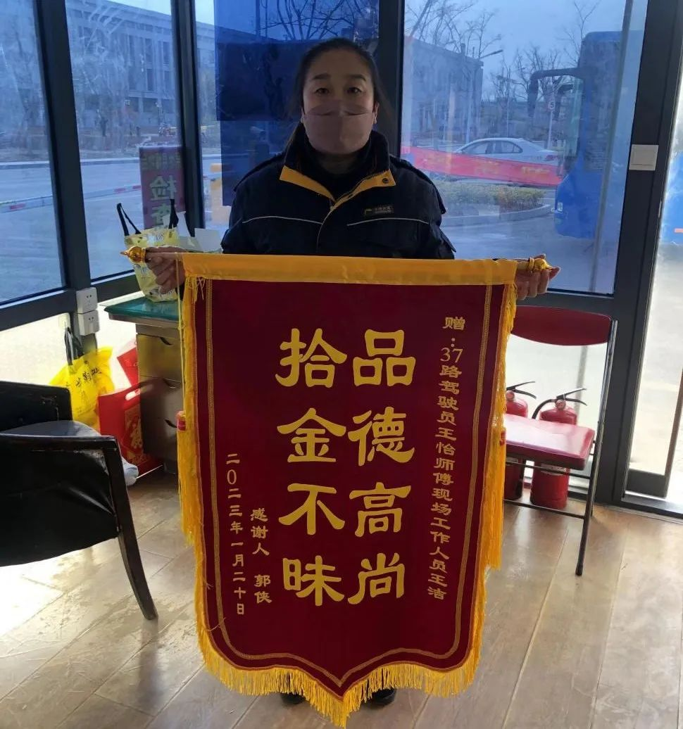 1月19日,失主郭女士通過公交集團(tuán)熱線電話聯(lián)系到車隊(duì)管理人員,經(jīng)過車隊(duì)的查詢落實(shí)后,郭女士與工作人員約好時(shí)間前來取回失物。1月20日,郭女士送來了一面錦旗錦旗,并撥打了熱線電話12345表揚(yáng)駕駛員王怡拾金不昧的精神。王怡熱心助人的行為充分體現(xiàn)了徐州公交駕駛員高尚的道德品質(zhì),他用實(shí)際行動(dòng)體現(xiàn)了 “向善、向美、向上”的價(jià)值追求,在平凡的崗位上傳遞公交正能量。