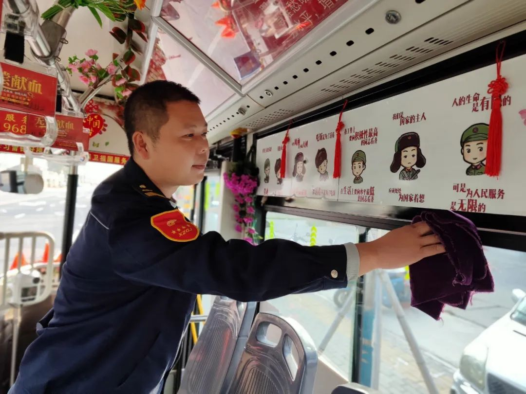 ]]>裴振華是新區(qū)巴士公司47路6731車駕駛員,47路從萬寨村到第一人民醫(yī)院南門總站,途經(jīng)32個(gè)站點(diǎn),裴振華每天在這條線路上迎來送往,重復(fù)的路線,重復(fù)的站臺(tái),重復(fù)的風(fēng)景,一路上有多少個(gè)路口、信號(hào)燈,哪個(gè)路段危險(xiǎn)系數(shù)高、何時(shí)人、車流量大他都了然于心。今年的春運(yùn),他又和同事們像平常一樣堅(jiān)守工作崗位。早上6點(diǎn),裴振華提前1個(gè)小時(shí)來到萬寨村總站,正做著發(fā)車前的準(zhǔn)備工作,檢查機(jī)油、水箱、電瓶及車內(nèi)設(shè)施等,并仔細(xì)打掃車廂內(nèi)外,為乘客營造一個(gè)干凈舒適的乘車環(huán)境。